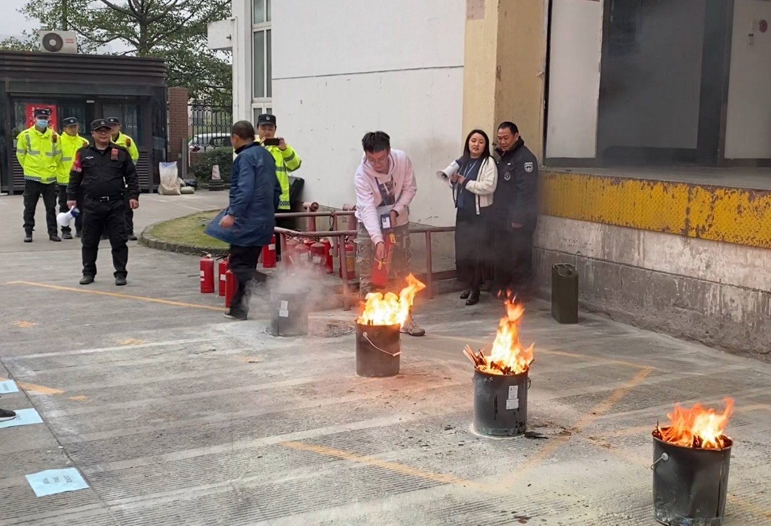 員工們在完成學習、掌握滅火器的使用技能后,紛紛上前進行演示。