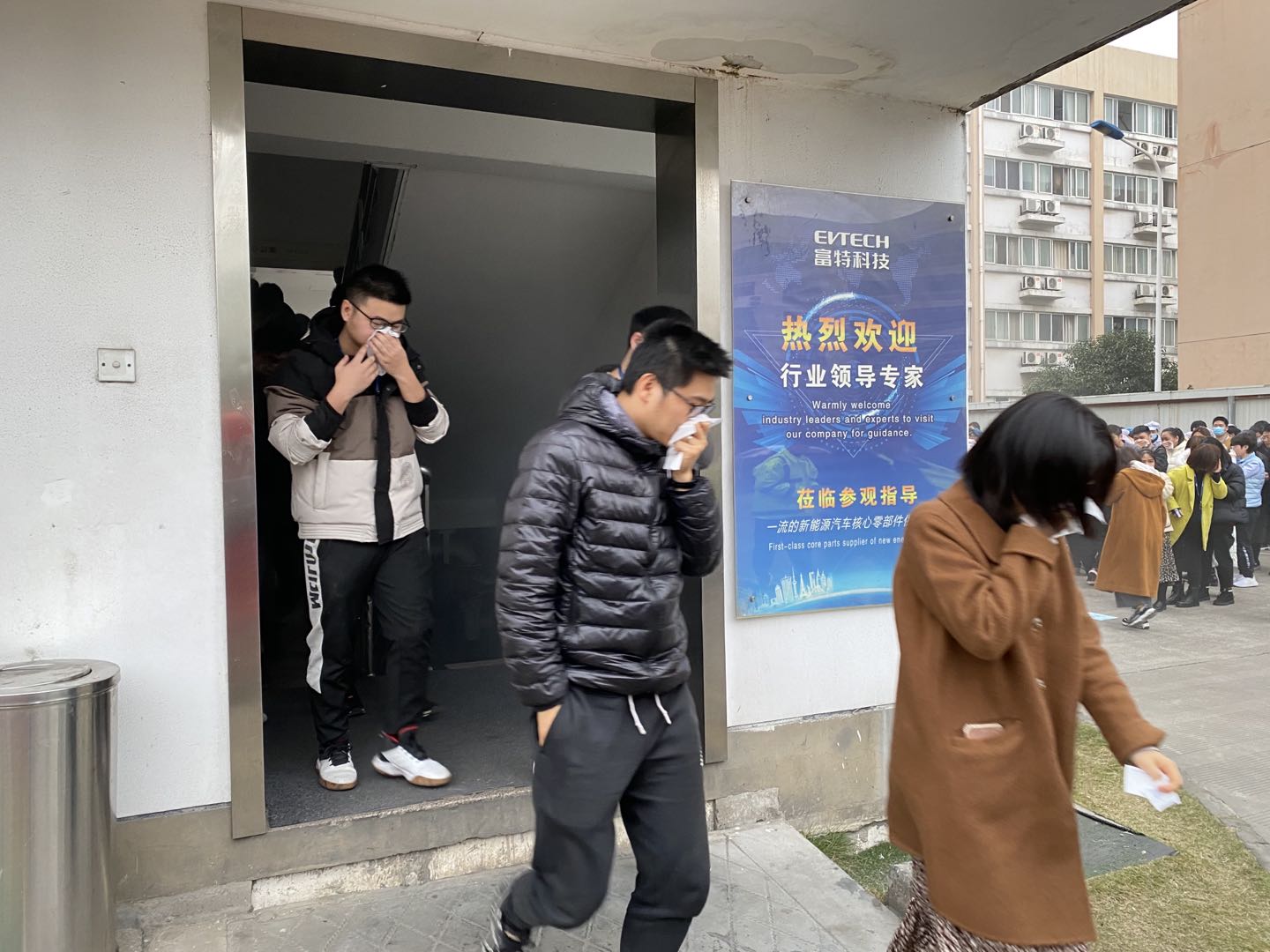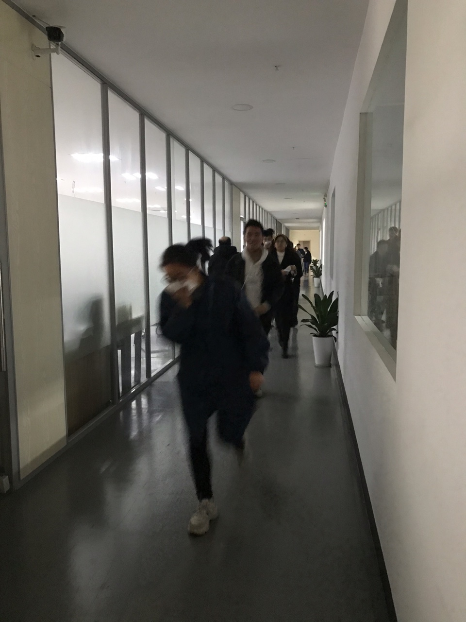 隨著警報響起,員工們紛紛有序地從辦公區域向指定安全區域轉移。