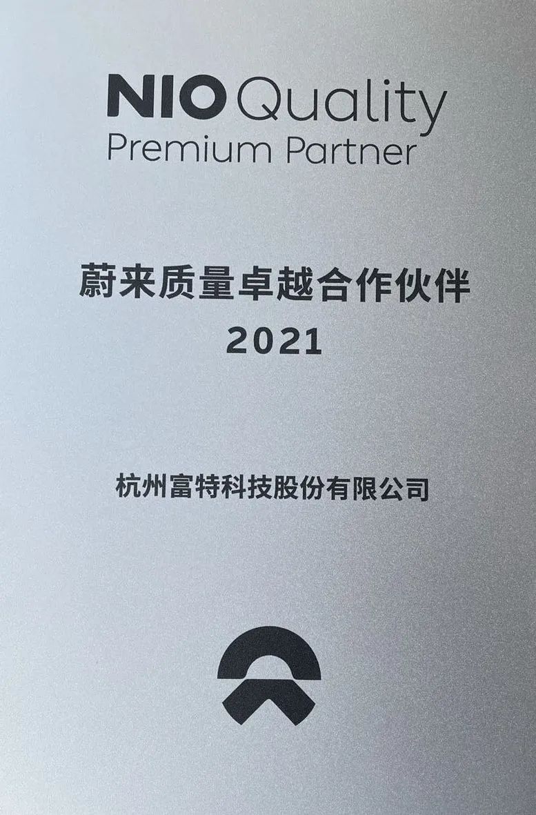 大會現(xiàn)場,蔚來汽車執(zhí)行副總裁沈峰先生,親自為富特科技頒發(fā)了NIO Quality Premium Partner(NQPP蔚來質(zhì)量卓越合作伙伴獎項),表達了對富特科技產(chǎn)品的巨大信任和肯定。