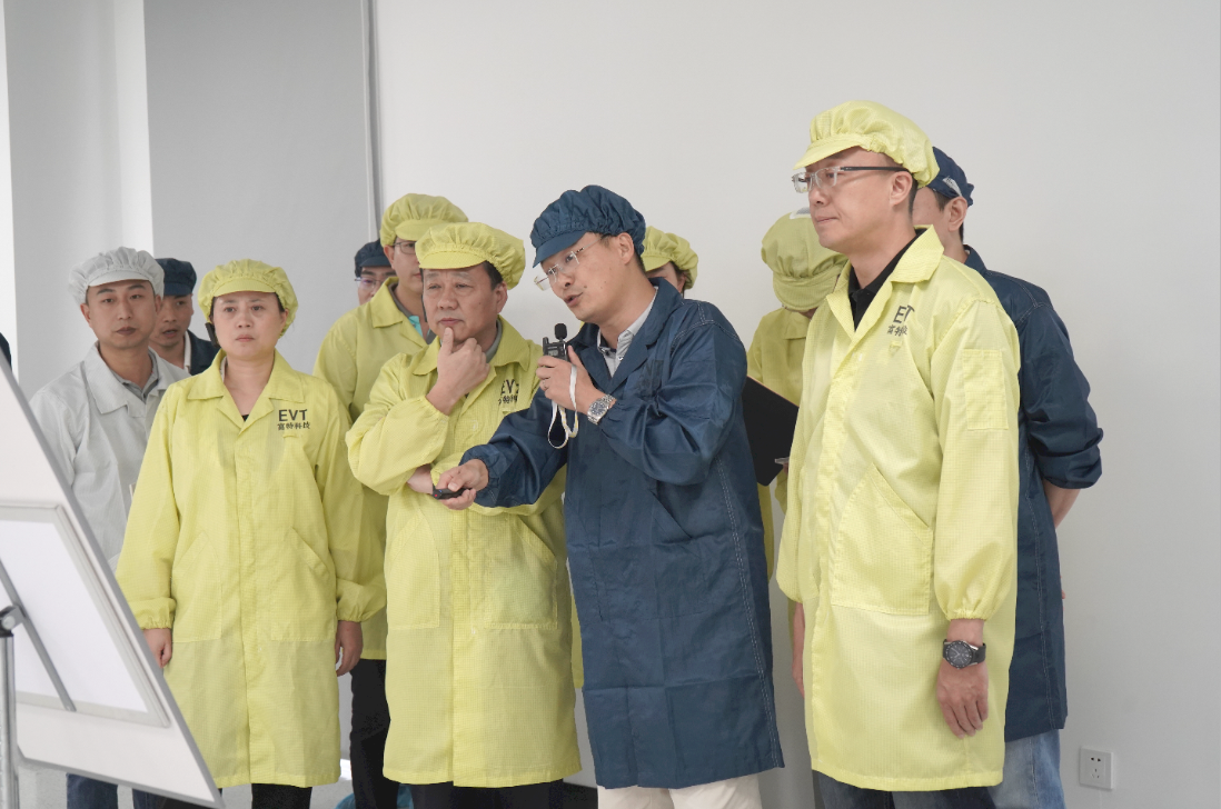 隨后,在現(xiàn)場工作人員的指引下,各位領(lǐng)導(dǎo)、嘉賓分為四個(gè)參觀指導(dǎo)小組,按照生產(chǎn)線要求著裝靜電服、佩戴靜電帽、穿戴靜電鞋套,進(jìn)入產(chǎn)線參觀指導(dǎo)。