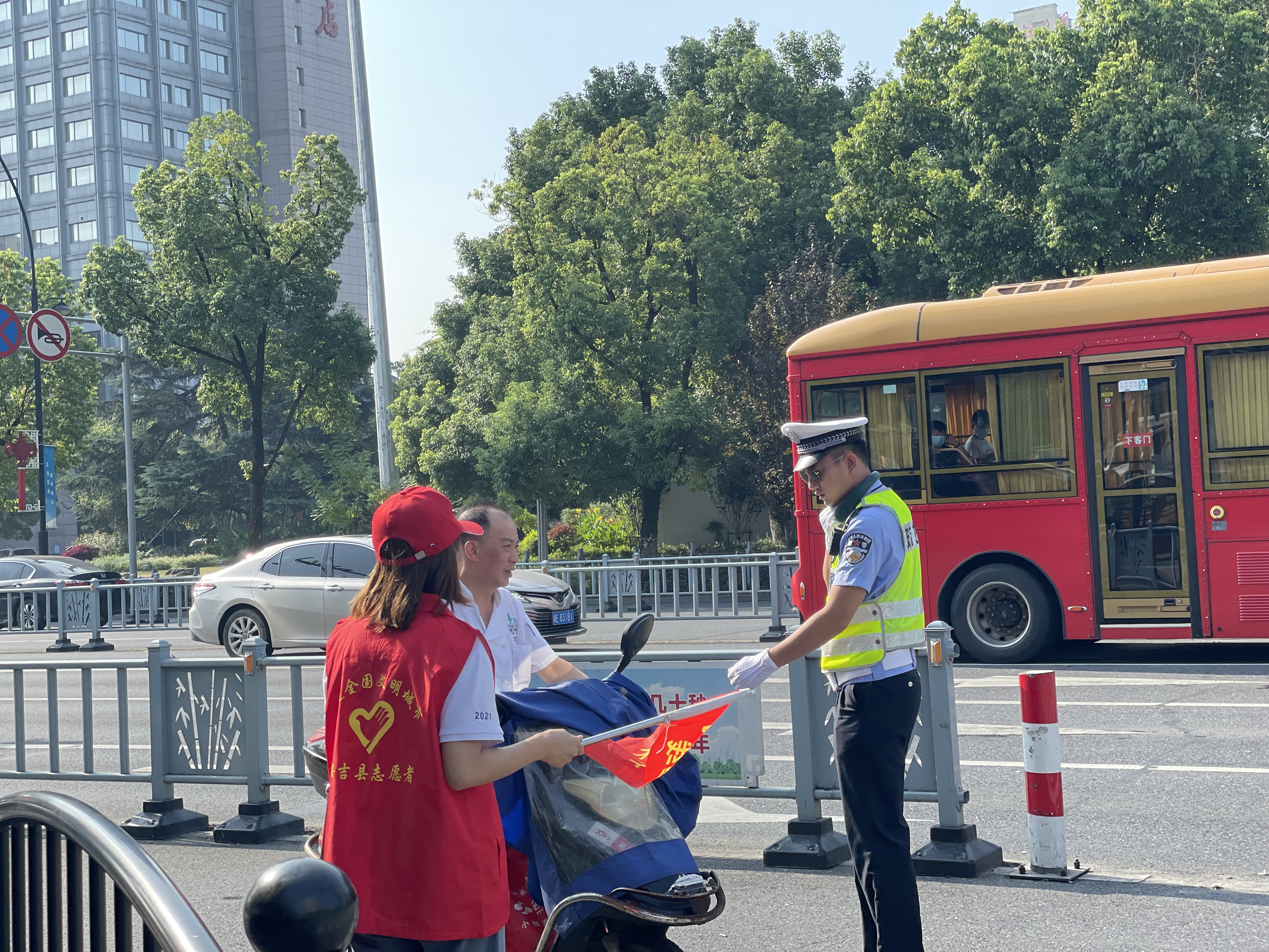 8月26日,富特科技組織交通指引志愿者前往安吉中心地帶的勝利路與天荒坪路交叉紅綠燈路口開展“文明交通勸導活動”,勸導過往居民走人行道、走斑馬線、騎車佩戴安全頭盔,嚴格遵守“紅燈停、綠燈行”等文明交通行為,引導居民自覺遵守交通規則。